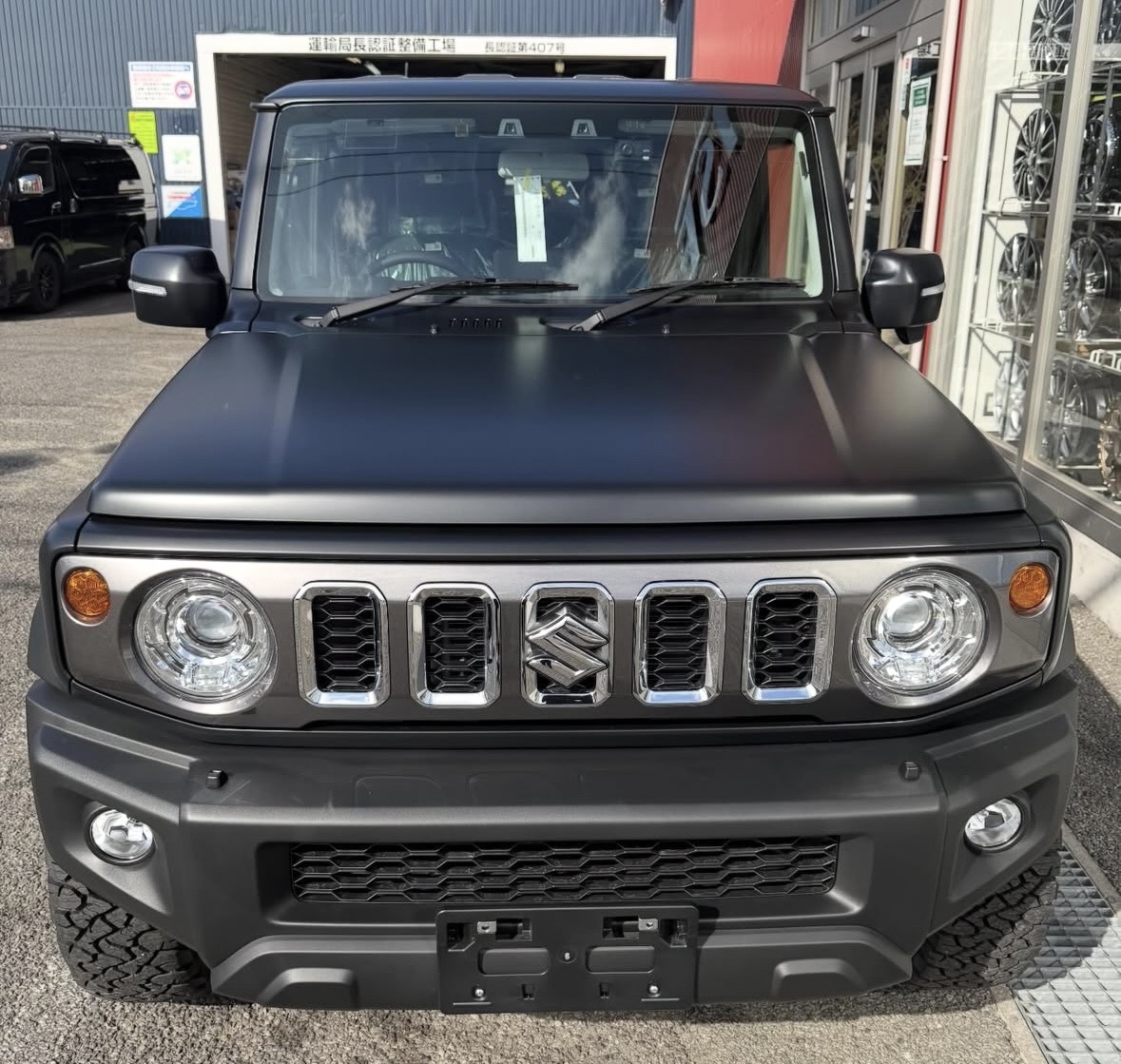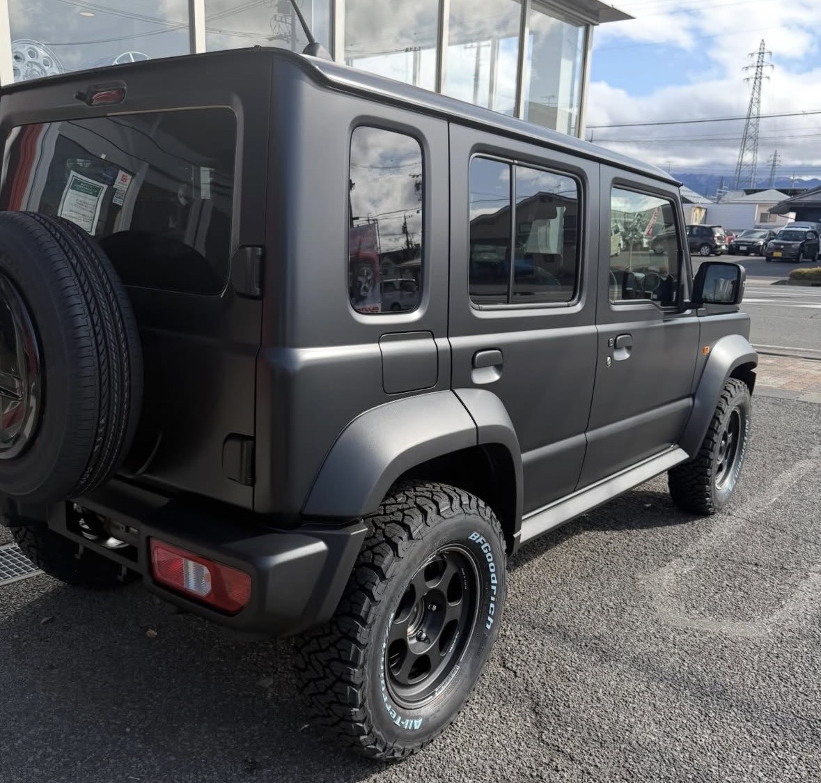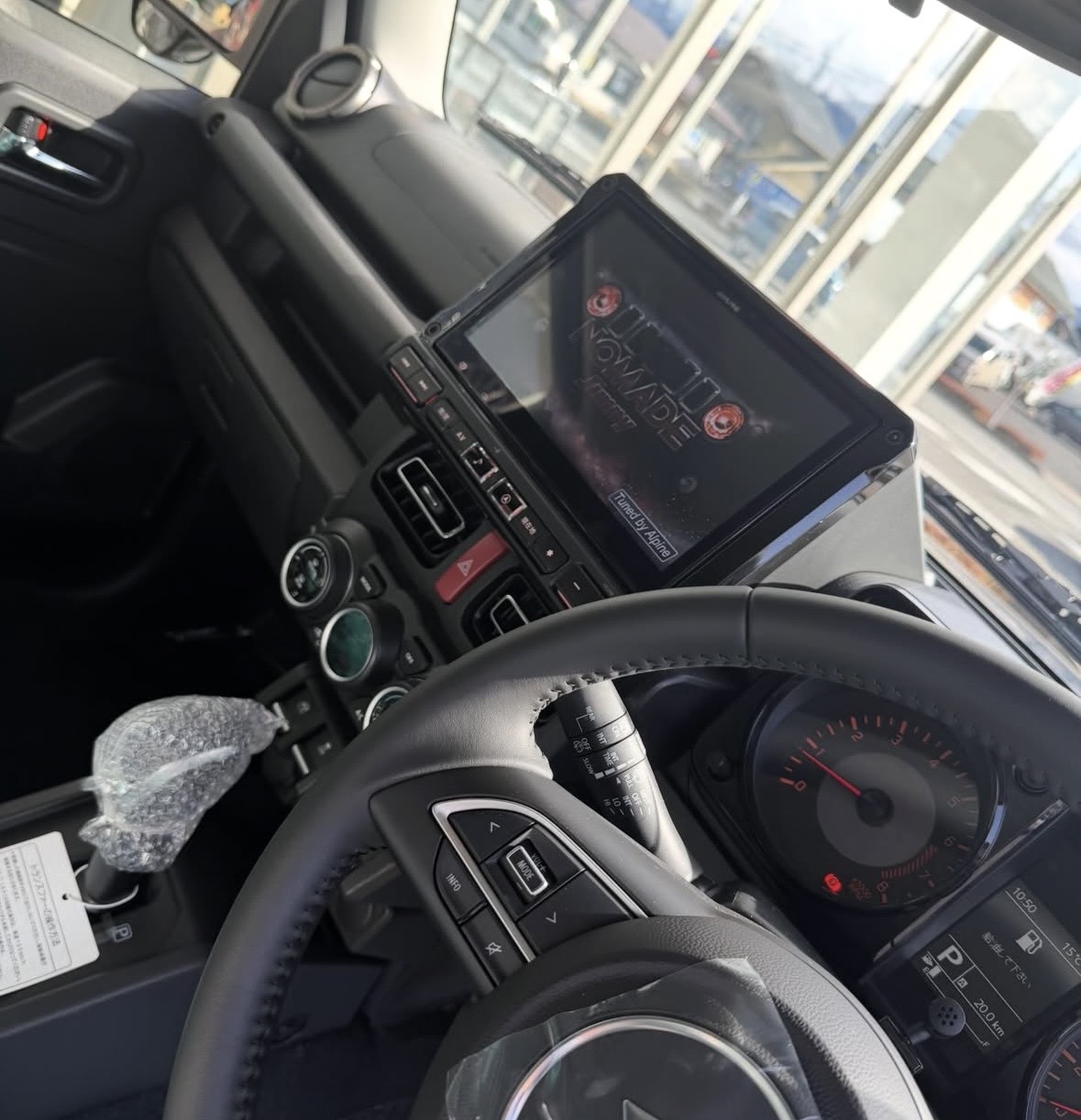 ジムニーノマド カスタム!! 2026年02月27日 タイヤ・ホイール, ボディーコーディング, オーディオ、ナビ, ボディコーデイング, カー用品, ピックアップ, NEWアイテム 新車のジムニーノマドをカスタムしました!! ⭐︎XPELフルプロテクションフィルム(ステルス) ⭐︎RAYS TE37 XT FOR J ⭐︎BF Goodrich 225/70R16 ⭐︎ナビ ALPINE BIG X マットブルーイッシュブラックパールの完成です😎 ちょーかっこいい✨ ありがとうございました✌️